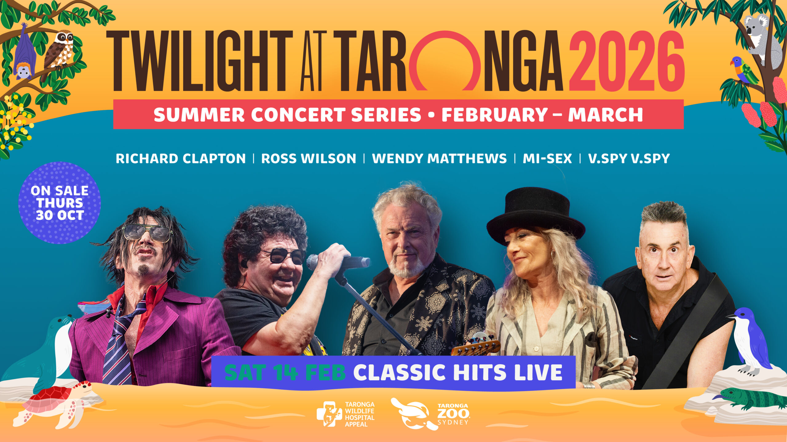 Get ready for a night of nostalgia and unforgettable tunes with Classic Hits Live featuring Richard Clapton, Ross Wilson, Wendy Matthews, Mi-Sex and Spy v Spy. Curated especially for Twilight at Taronga, this all-star line-up brings together iconic voices and timeless anthems with songs you know every word to sounding as good as ever!